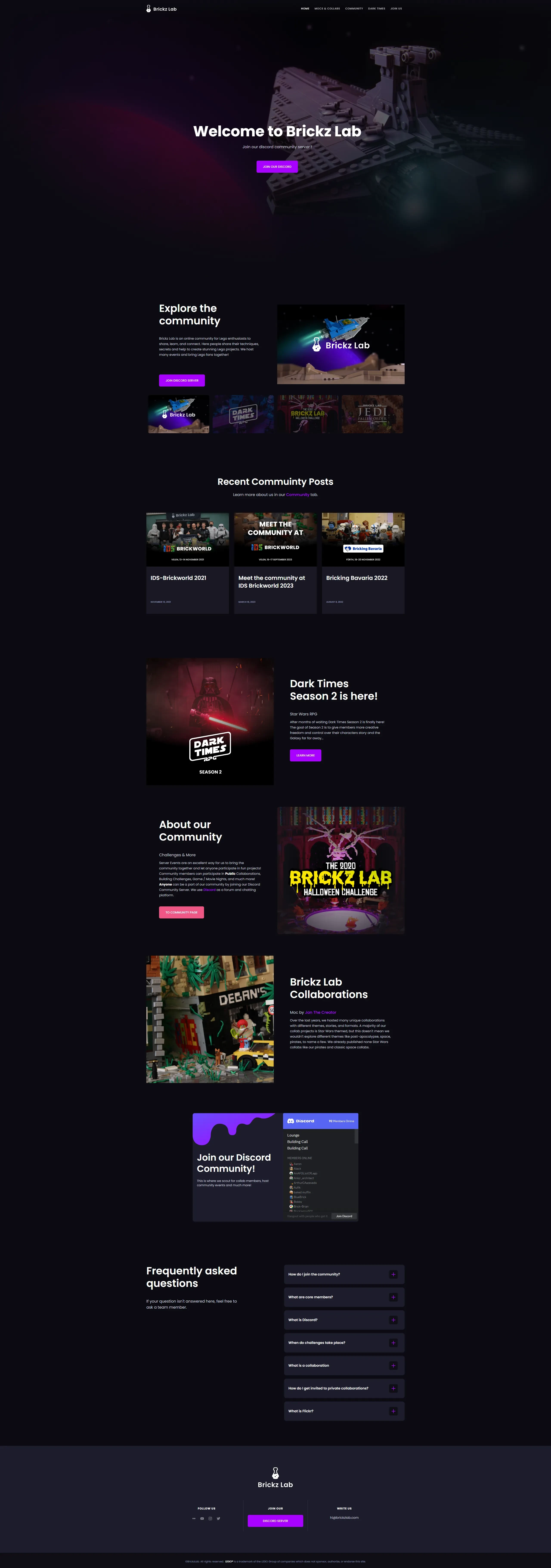 BrickzLab is a personal project I'm passionate about. Apart from game and web design, Lego plays a significant role in my life. During the pandemic, I decided to establish my own Lego community to collaborate with other AFOLs (Adult Fans Of Lego). Of course, we needed a website, so I took it upon myself to design and develop it.
